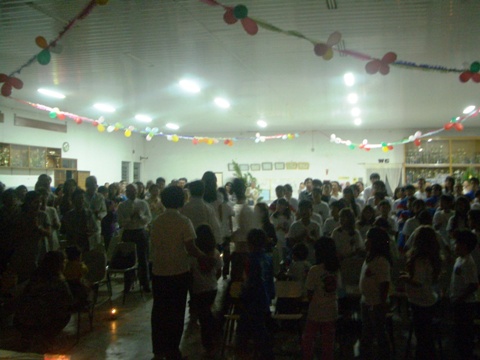 卒業生・卒園生 入場 エリーナ先生を先頭に、会館後ろから入場です。 ブラジル・日本両国国歌斉唱 もちろん全員起立して歌います。 挨拶 始めに文協会長の阿部勇吉さんから挨拶がありました。 それから下記の方々の挨拶がありました。