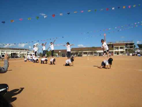 練習は体育の時間2回と1学期最後の週の毎日1時間という短い時間でしたが、この日は失敗する生徒もほとんど出ませんでした。そして、練習では砂で遊んだり話を聞いていなかったりして子供達もとても集中してやっており、これまでで一番のほんとーに素晴らしい出来でした。